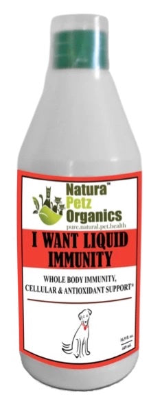 I Want Liquid Immunity is used holistically to help support healthy immune function; may help address colds and flu in dogs and cats; may help address bacterial and viral infections due to its strongly antioxidant, primary anti-mutagenic, anti-viral, anti-bacterial and anti-septic natural plant chemicals; and may help correct abnormal cell growth and standardize normal cell operation; may help reduce catabolic waste; may help protect your pet's DNA from cellular mutations; may help promote T cell and macrophage response; may help swelling caused by injury, allergenic response and damage to smooth muscles and connective tissues in esophagus and stomach tissue lining.